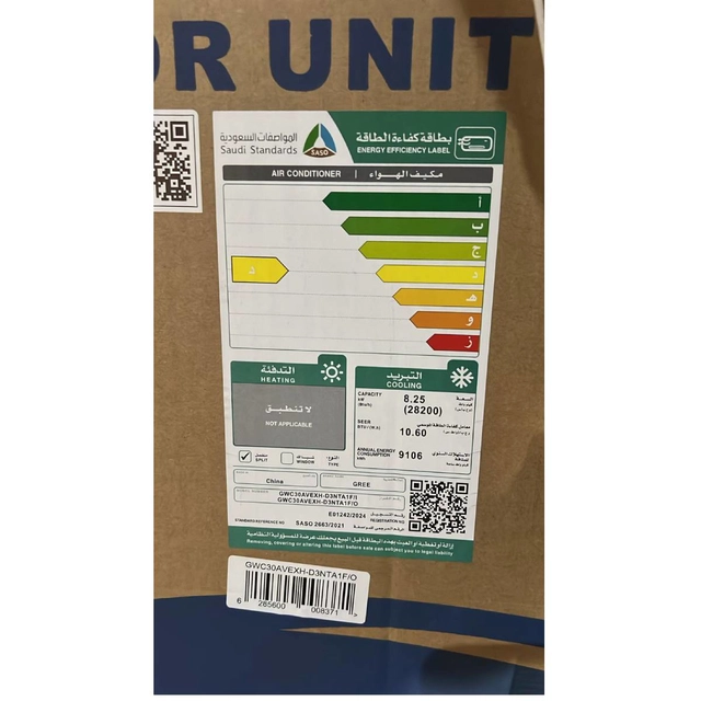 مكيف جداري من جري الاحترافية، بسعة 28200 وحدة حرارية للتبريد فقط، يتميز بأداء عالٍ وتشغيل هادئ مع كفاءة في استهلاك الطاقة.